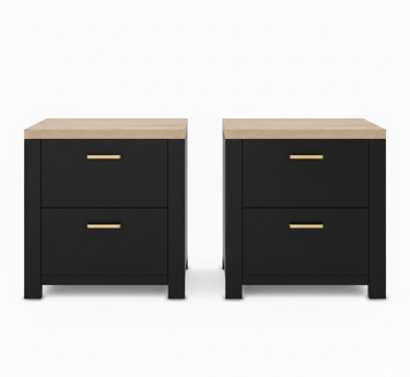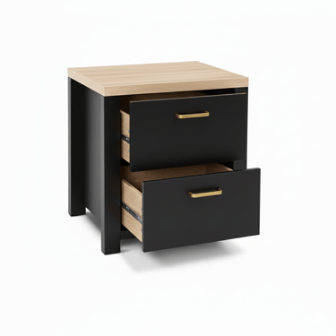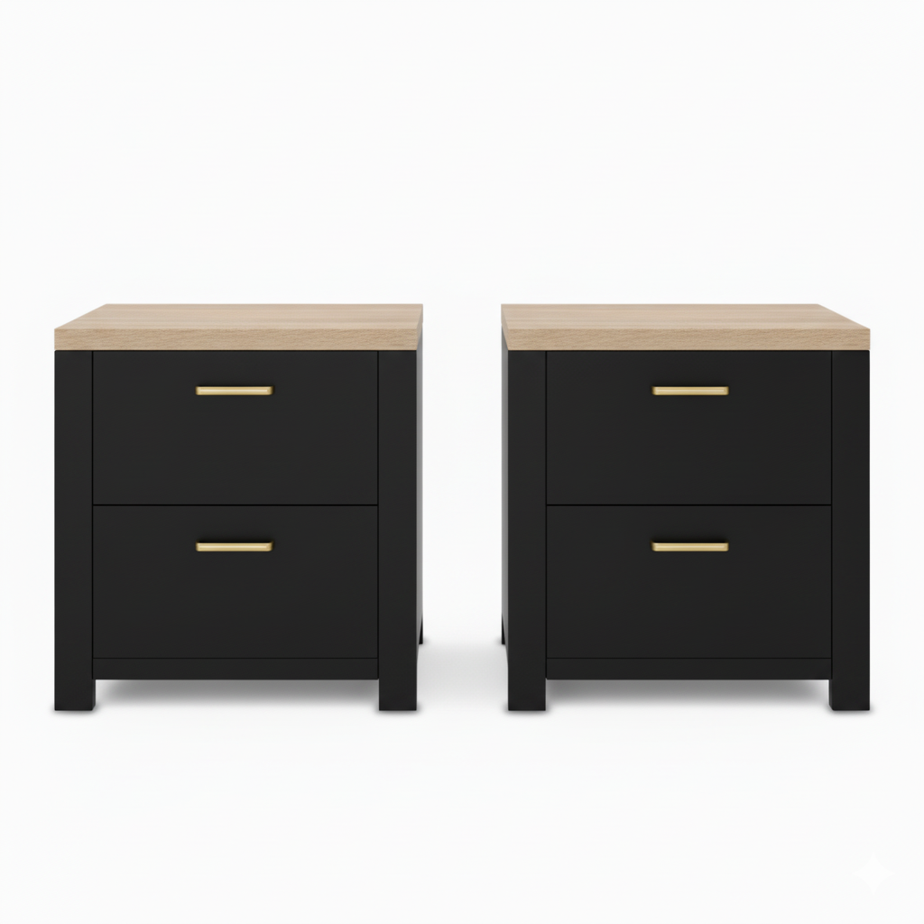 Maisone Bedside Table - Black/Wood (Set of Two)