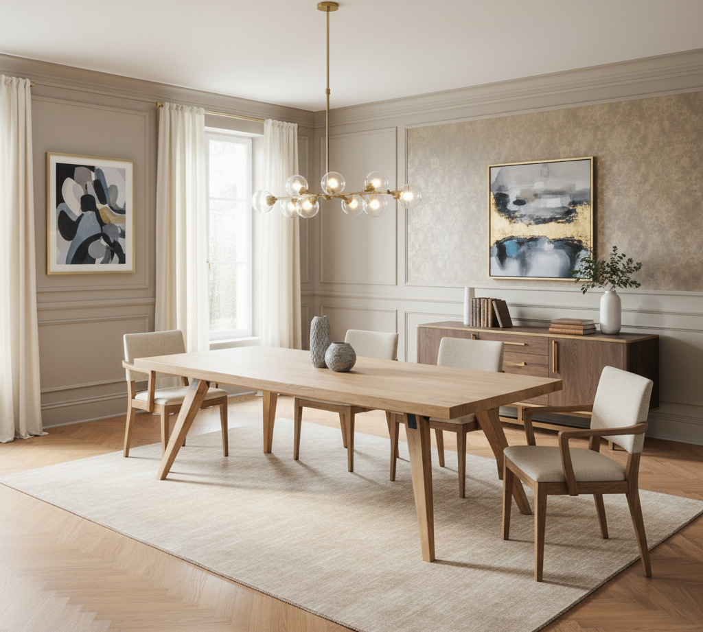 Crafted with character and authenticity, this reclaimed elm dining table celebrates the beauty of natural imperfection. Handcrafted from a combination of reclaimed elm wood veneer, solid wood, and engineered wood, each piece is truly one of a kind. The sturdy solid elm frame and base showcase exposed grain textures and an antique, weathered finish that evokes timeless rustic charm. Lightly treated to preserve its raw, organic qualities, the table comfortably seats up to eight guests — perfect for both everyday meals and memorable gatherings.