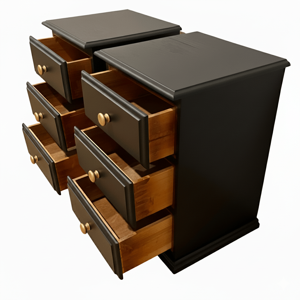 Refurbished Bedside Table - Black/Gold Knobs (Set of Two)