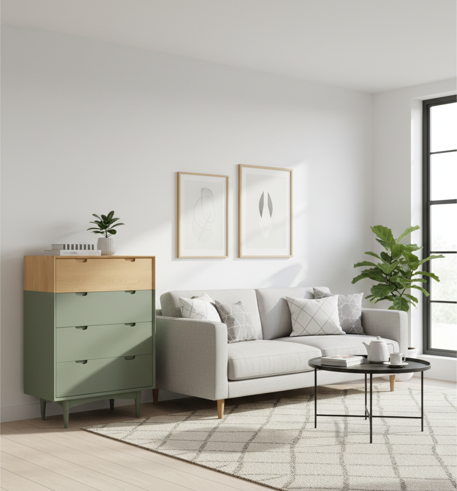 Distinctive Two-Tone Design: Natural wood grain meets bold matte sage green for a truly eye-catching aesthetic.