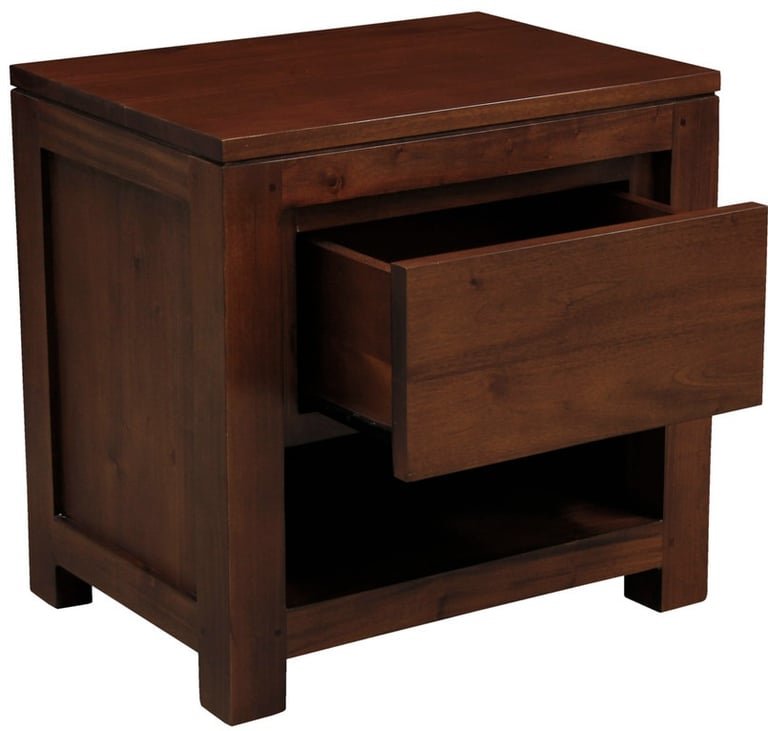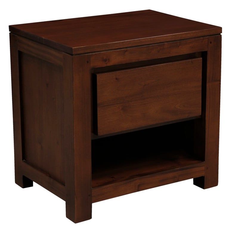 Sleek, practical, and timeless, the Alverne Mahogany Timber Bedside Table is crafted from solid mahogany timber for strength and lasting beauty. It fits perfectly beside your bed, offering ample surface space and a convenient drawer for storage.