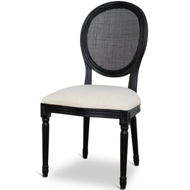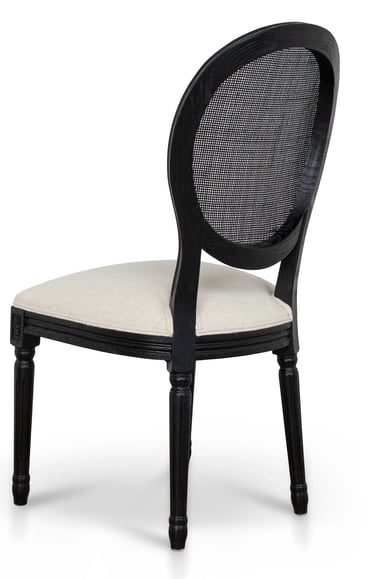 Elevate your dining experience with the distinguished elegance of the Elmwood Noir Dawn (set of 2). Each chair boasts a resilient Dawn Beige finish, a luxurious blend of 90% polyester and 10% linen, promising both comfort and lasting beauty. The entire frame is artfully finished in matte black, revealing the natural grain of the wood, while the four elm legs are meticulously carved with delicate floral details, adding a touch of classic charm.