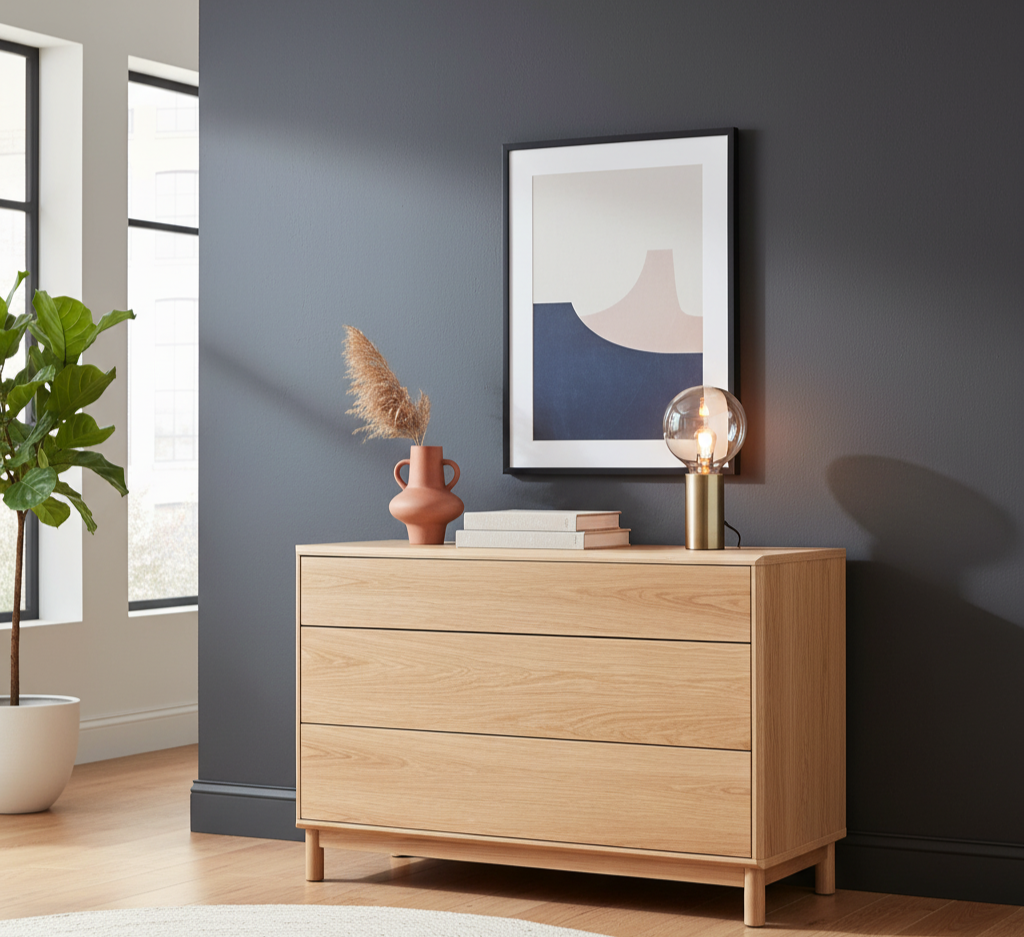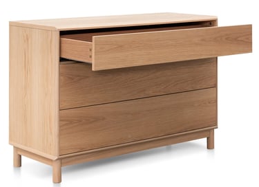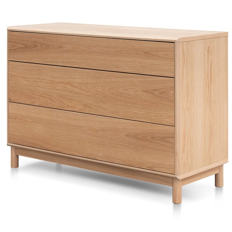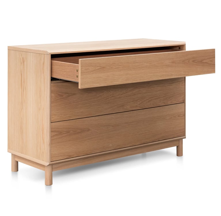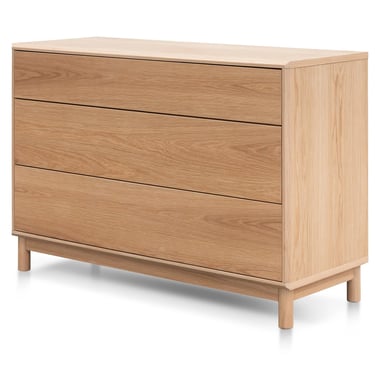Crafted with precision, this piece features a beautifully textured oak veneer finish that celebrates the grain and character of real timber. The smooth drawer fronts and minimalist silhouette offer a modern yet timeless appeal, while the sturdy build ensures lasting durability.