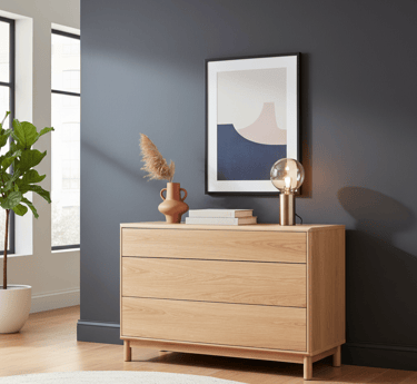 Bring warmth and natural charm to your space with the Hazelmere Dresser in Natural Oak (also available in black).