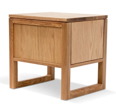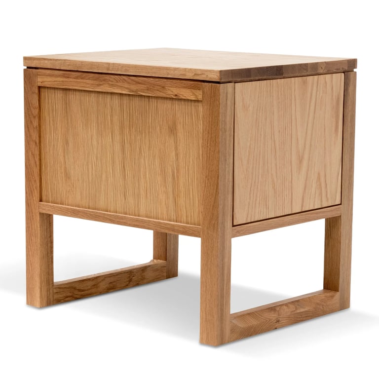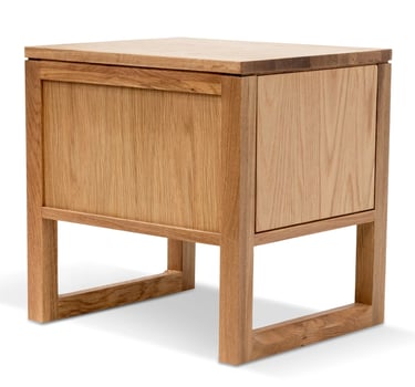 This bedside table showcases a modern Scandinavian-inspired design, beautifully crafted from natural solid oak wood and oak veneer for a warm, organic feel. Its clean lines and minimalist silhouette bring a sense of calm and sophistication to any space.