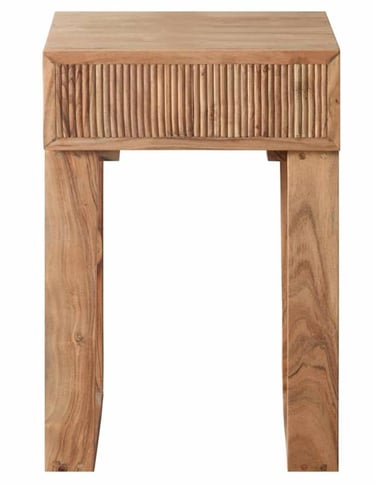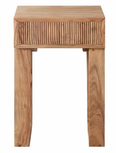 Elevate your bedroom space with this beautifully crafted industrial side table, blending classic charm with a modern aesthetic. Made from solid Acacia wood, it showcases the natural grain and warmth of the timber, making each piece truly unique.