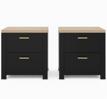 Maisone Bedside Table - Black/Wood (Set of Two)