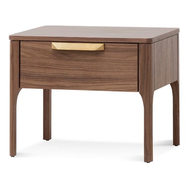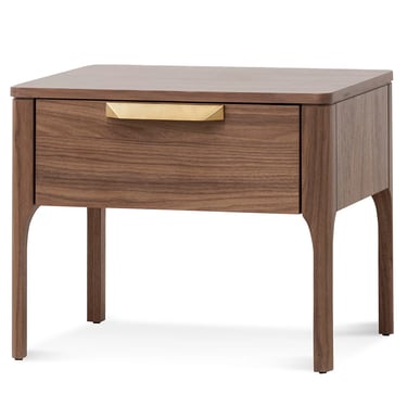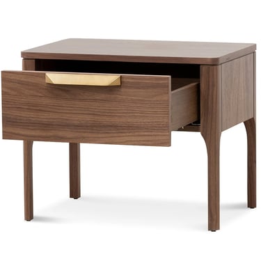 This bedside table is crafted from durable engineered wood with a rich walnut veneer, featuring E1 standard paneling for quality and safety.