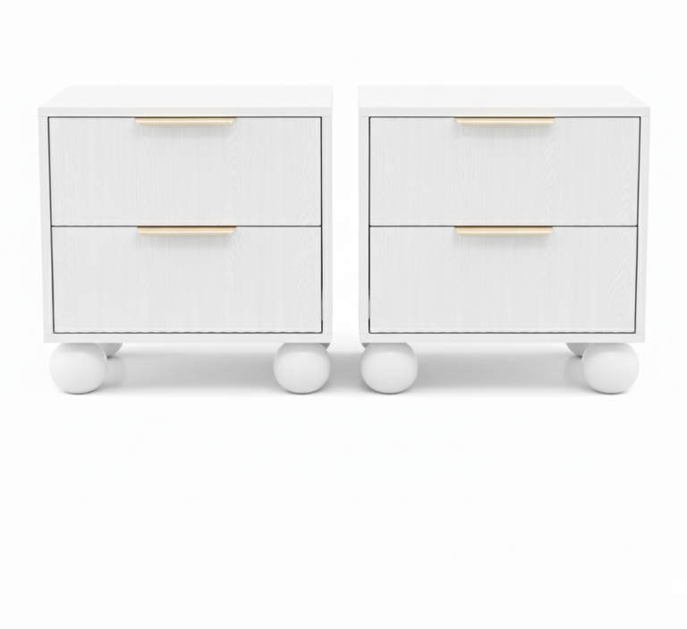 Elevate your space with the Marcellé Bedside Table, a seamless fusion of craftsmanship and contemporary design. Expertly constructed from durable 15mm MDF and E1 particle board, it features two smooth-gliding drawers accented with sleek metal handles, delivering refined style and practical storage. The clean lines and balanced silhouette make Marcellé a timeless addition to any modern or classic interior.
