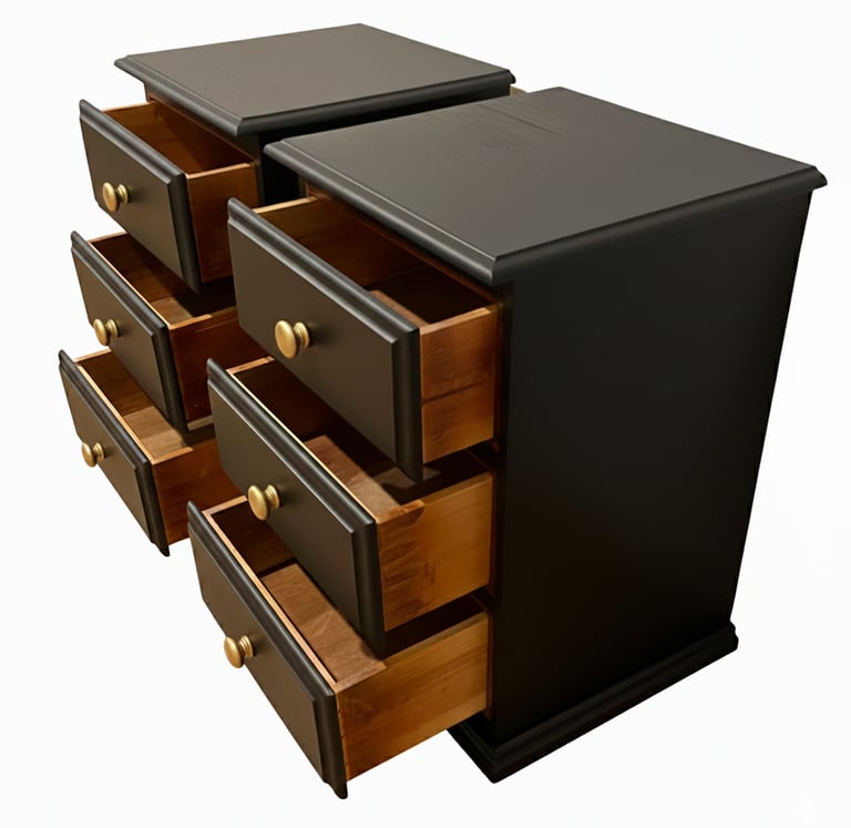 Refurbished Bedside Table - Black/Gold Knobs (Set of Two)