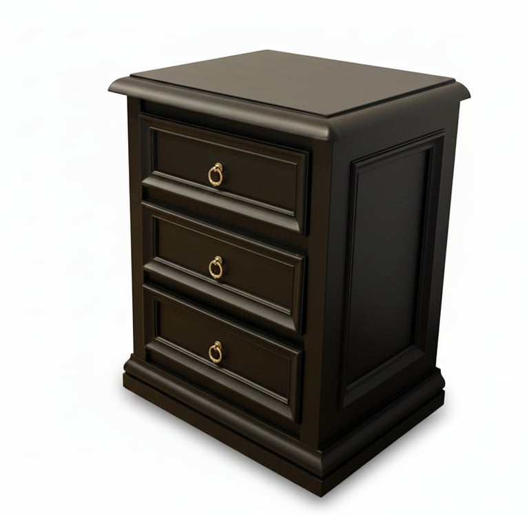 Each nightstand offers three generously sized drawers, providing practical storage for bedside essentials while keeping your bedroom neat and organised. Solidly built and thoughtfully restored, these pieces combine durability, sophistication, and sustainability making them a perfect addition to modern, classic, or transitional interiors.