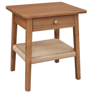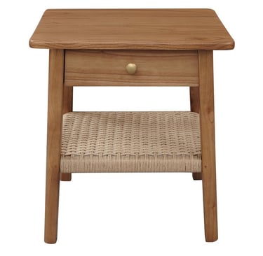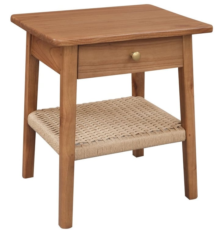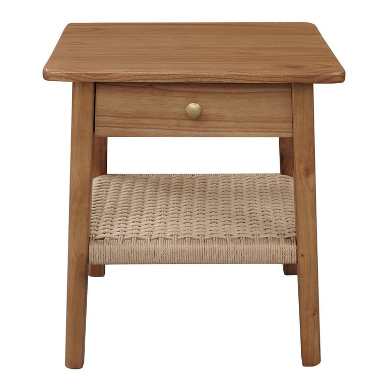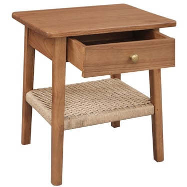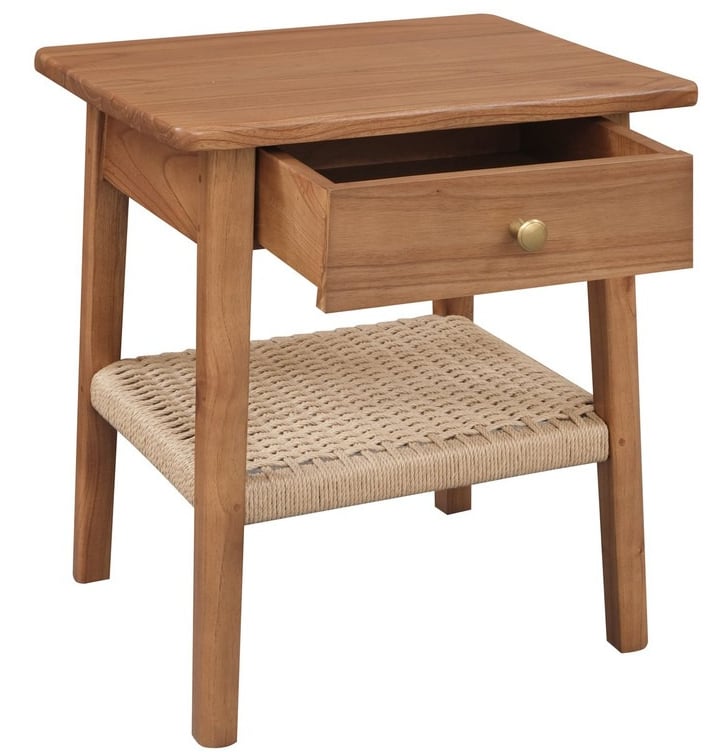 Featuring a solid brass handle for a timeless look and a handwoven loom shelf that adds character while providing extra storage, this bedside table balances style and practicality. Fully assembled and ready to use, it’s the perfect addition to both modern and mid-century-inspired interiors.