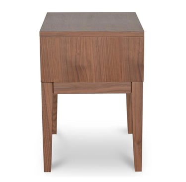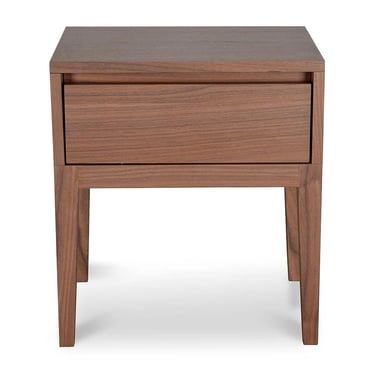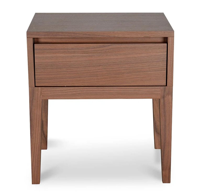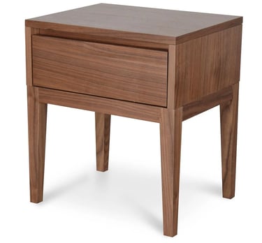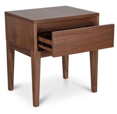 This bedside table features a single drawer with dual-section ball-bearing runners, ensuring a smooth and effortless open and close.