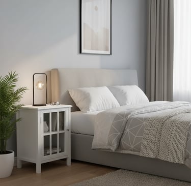 Adorn your bedroom with this elegant industrial-style bedside table, blending classic charm with modern appeal. Featuring a clean white finish paired with a brushed silver handle, it brings a touch of sophistication to any contemporary home.